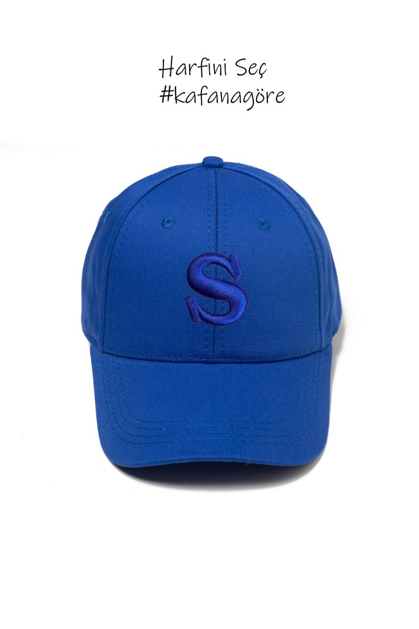 Lacivert S kabartmalı nakışlı gabardin kep