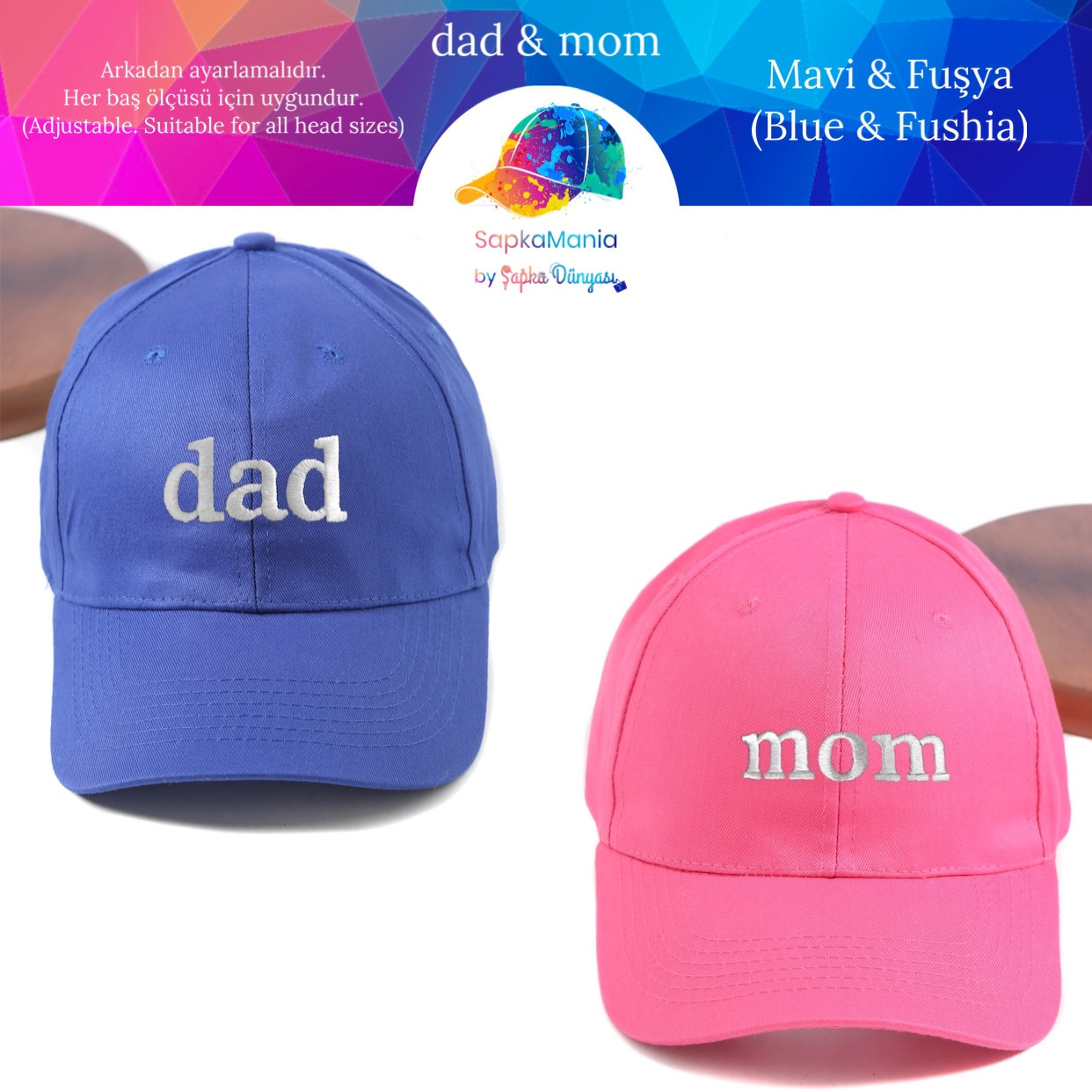 Mom ve Dad ikili set kabartmalı nakışlı kepler